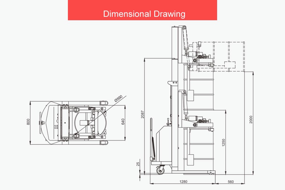 3. Lift an upright drum & place in horizontal position on & off racks, pallets, trucks;