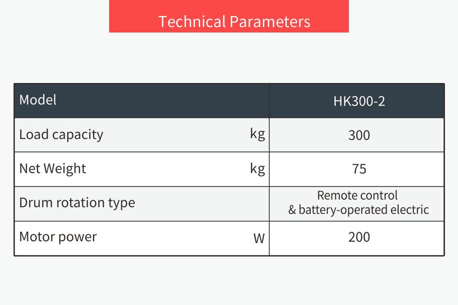 ◆Rotation drums; can be used with 12V forklift battery or with extra battery;